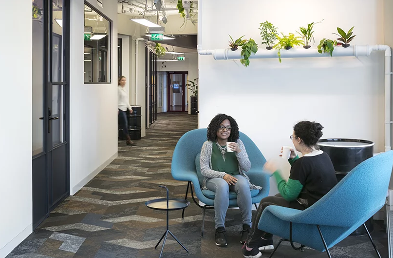 在整個辦公室裝修中,可以找到創(chuàng)新的綠色應(yīng)用,如走廊的管廊、植物墻和新開發(fā)的綠色財(cái)富枝形吊燈,廚房自動澆水。辦公室裝修Kraijvanger建筑師還與Artbinder合作,該公司將當(dāng)?shù)厮囆g(shù)家的藝術(shù)與工作室水療結(jié)合起來,為城市叢林客廳提供獨(dú)特的辦公室裝修理念。