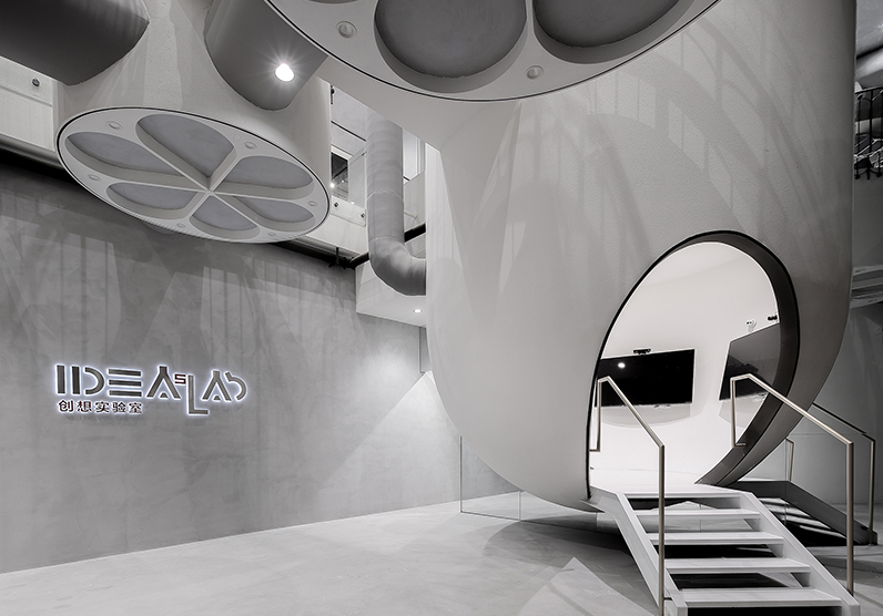 在受工廠環境啟發的同時,建筑師切斷了所研究的復雜部分,辦公室裝修只保留了可以與新目標相對應的部分。這包括大型反應罐,能量輸送管和行走平臺,所有辦公室裝修空間都可以被新定義為整個實驗室的研究區域,休閑空間或路線。