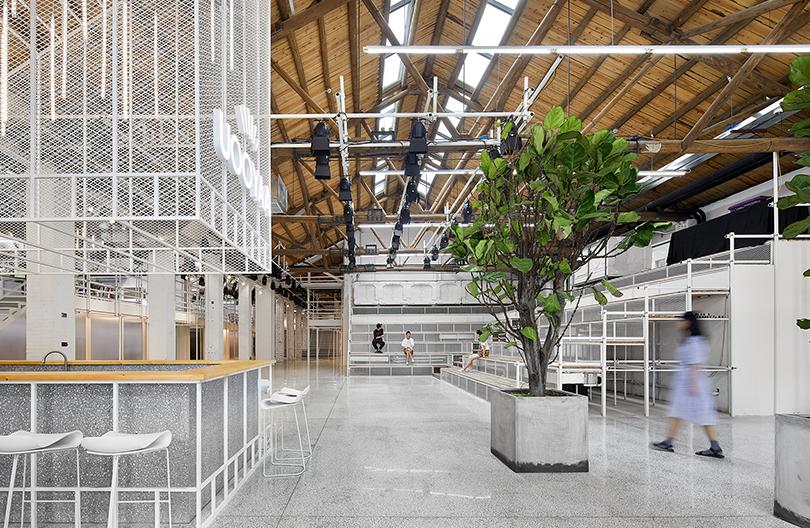 這個(gè)地點(diǎn)曾經(jīng)是倉(cāng)庫(kù)以前的太空工廠。這個(gè)辦公室裝修保留原來(lái)的結(jié)構(gòu),只對(duì)天花板進(jìn)行簡(jiǎn)單的修繕和翻新-在重建廠區(qū)的過(guò)程中,還增加了天窗。他們讓在新建的第二層工作的人們享受陽(yáng)光和天空的景色。