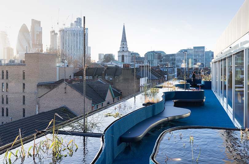 位于馬德里的建筑公司selgascano設計。該辦公室裝修建筑位于倫敦東部的spitalfields,占地15,000平方英尺(1,394平方米),周圍環繞著充滿水生植物的游泳池。還包括800多種熱帶樹木和植物。此外,總辦公室裝修建筑面積增加到65,000平方英尺,為創意公司和組織提供了更多空間。